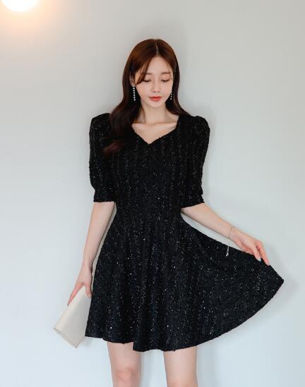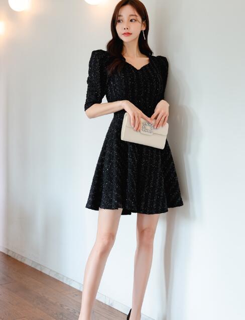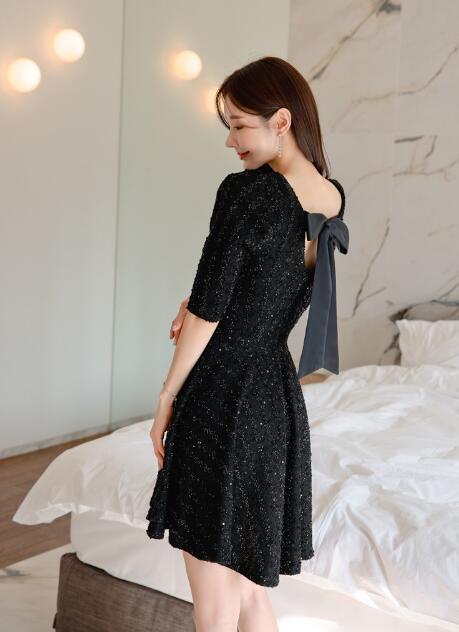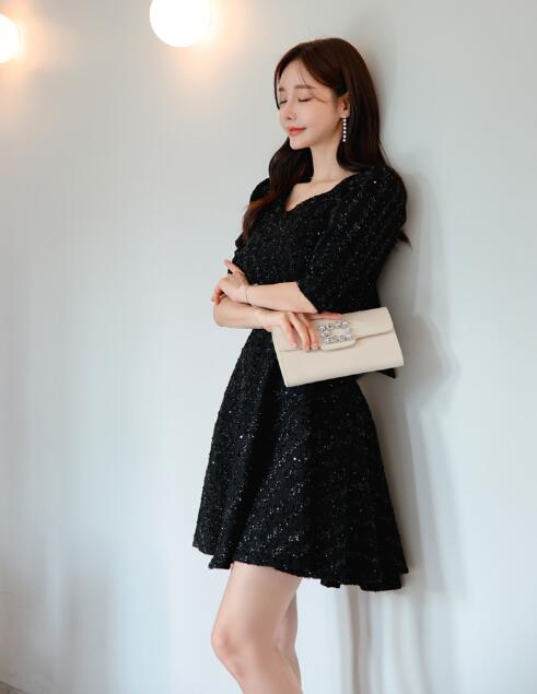 ワンピース 結婚式 着痩せ おしゃれ キラキラリボンワンピ セクシーワンピース キャバ 膝丈 五分袖大人 スタイル上品 韓国 二次会 発表会 お呼ばれ同窓会 謝恩会女子会披露宴 パーティー