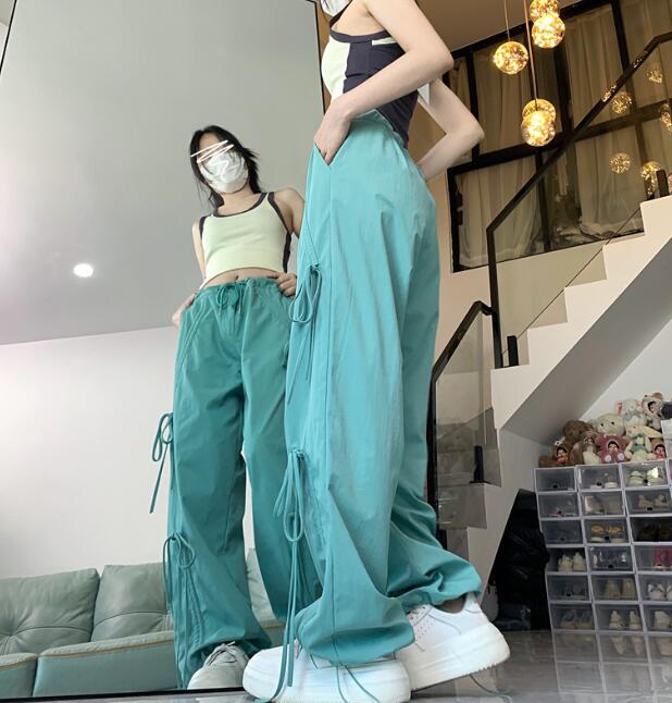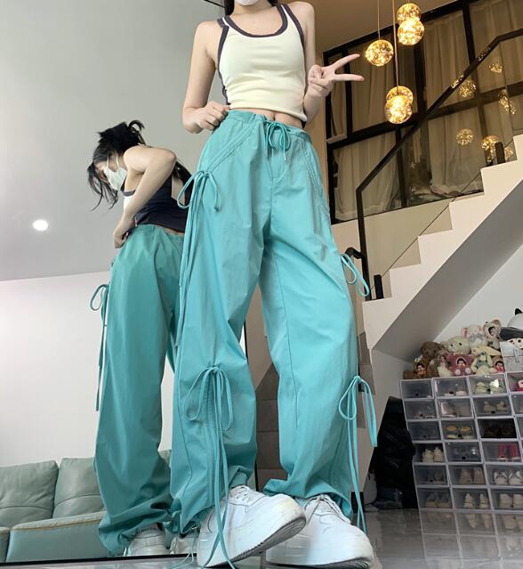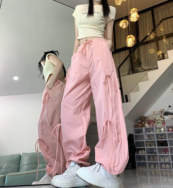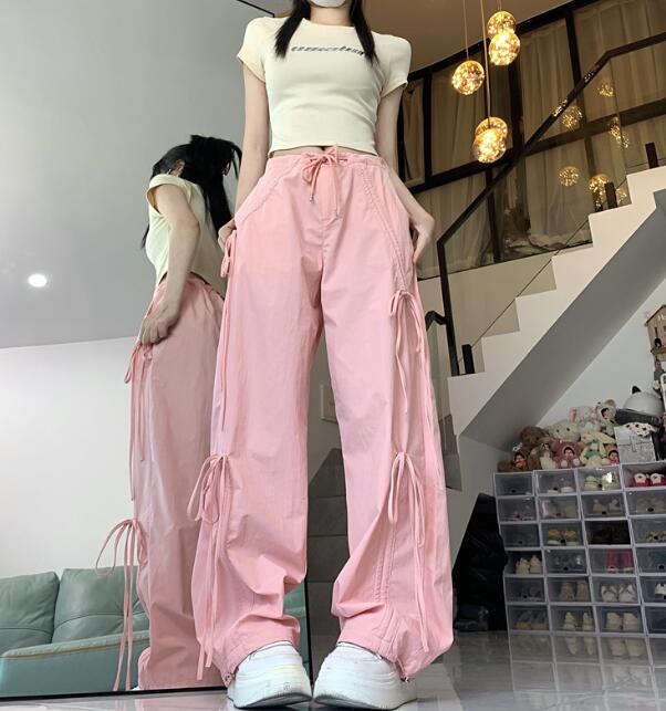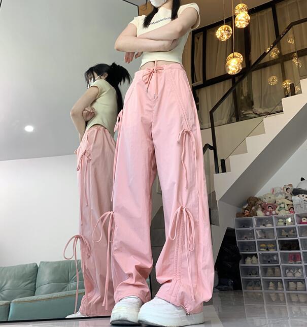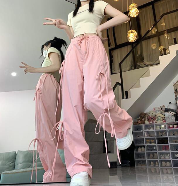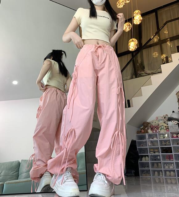 リボンカーゴパンツパンツズボンボトムス レディースファッション 続々登場 ピンク ブルー S M L XL