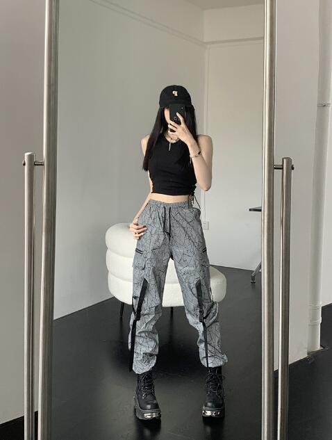 ズボンボトムスパンツハイウエストロング ダンス衣装 ベルトゴム蛍光色 衣装 ダンス イベント文化祭 コスチューム 韓国ファッション ヒップホップ レディースガールズ 個性的 HIPHOP