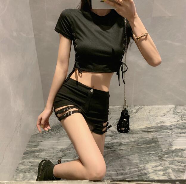 パンツズボンボトムスショートパンツショーパン無地シンプルベルトダンス衣装 ダンス イベント文化祭 コスチューム 韓国ファッション HIPHOP レディースガールズ 個性的 ヒップホップ