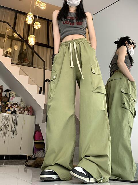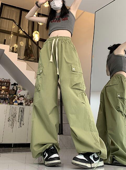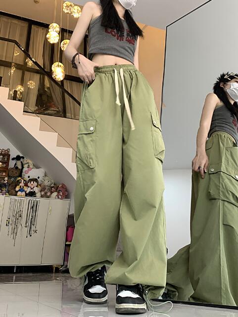 ワイドカーゴパンツズボンボトムスパンツハイウエスト裾絞りロングジョガーパンツシンプル大きいサイズゆったりだぼだぼダンス衣装ヒップホップHIPHOPレディースメンズストリート奇抜派手
