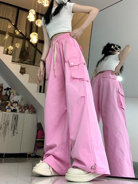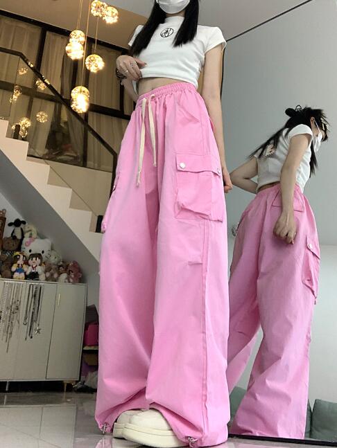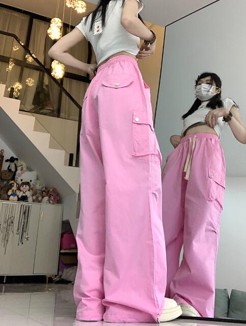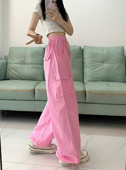 ワイドカーゴパンツズボンボトムスパンツ レディースファッション 新登場! ピンク グリーン S M L