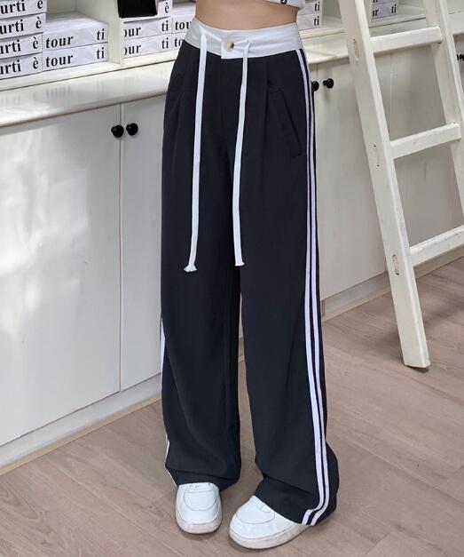 パンツズボンボトムスラインスウェット ロングワイド太い太め大きいサイズジャージ ゆったりハイウエストダンス衣装 ダンス イベント文化祭 コスチューム HIPHOP ヒップホップ レデ 韓国ファッション