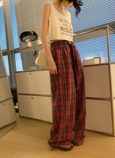 チェック柄パンツズボンボトムススウェッ レディースファッション 続々登場 グリーン レッド