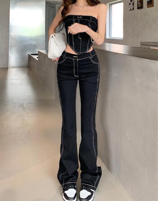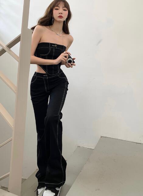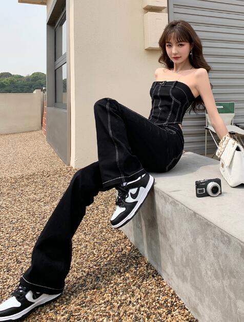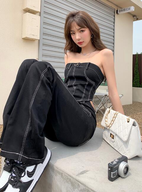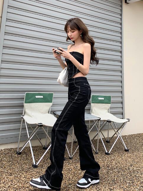 デニムズボンボトムスパンツジーンズジーパンシンプルダンス衣装ヒップホップHIPHOPレディースガールズストリート奇抜派手韓国ビッグ大きいサイズかっこいい