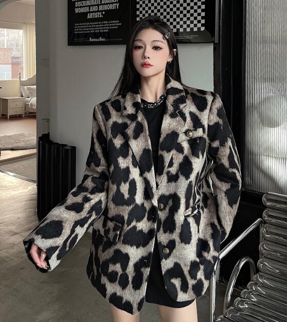 モード系 ヒョウ柄長袖 ビッグシルエット ゆめかわいい 奇抜 派手 ジャケット アウター ダンス 衣装 ヒップホップ コスチューム 韓国ファッション 大きいサイズ 服 原宿系オーバーサイズ レ 個性的