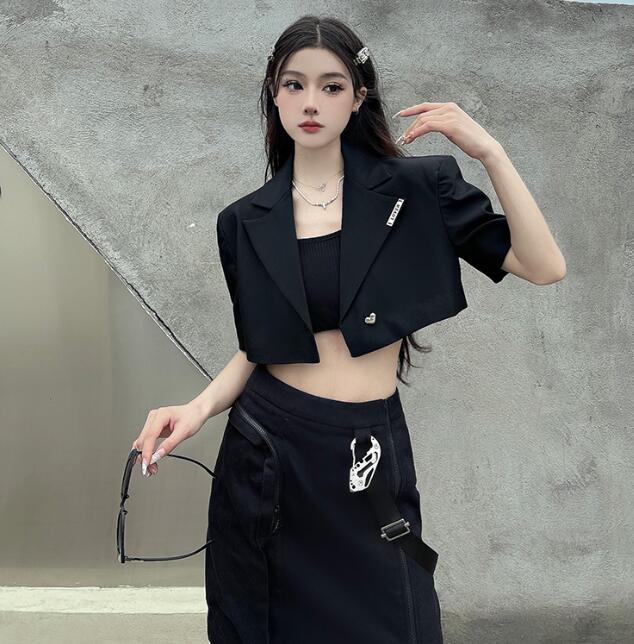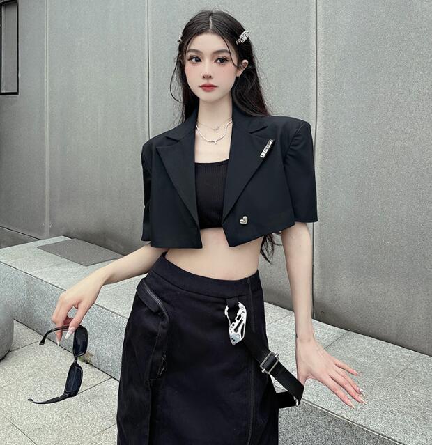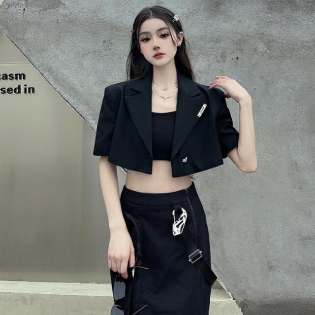 モード系半袖 ビッグシルエット ゆめかわいい 奇抜 派手 ジャケット アウター ダンス 衣装 ヒップホップ コスチューム 韓国ファッション 大きいサイズ 服 原宿系オーバーサイズ レディースガ 個性的