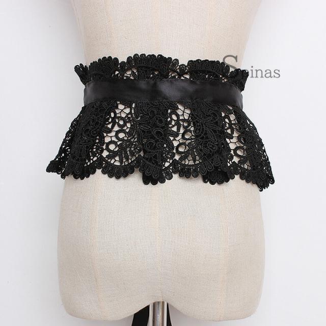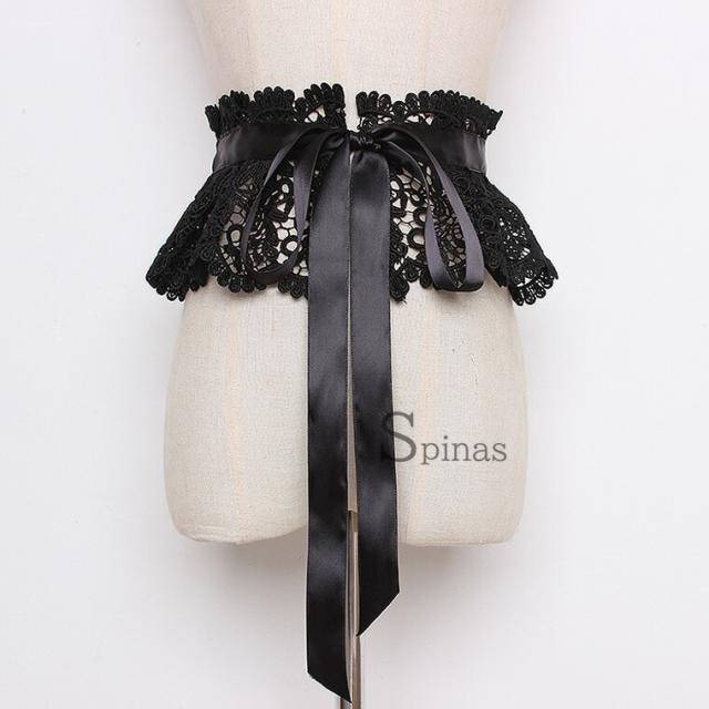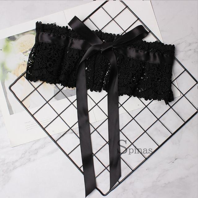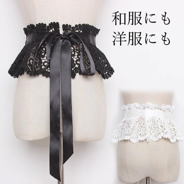 和装にも洋装にもOK レディース 幅広レース サッシュベルト コルセット ハイウエスト 太ベルト レース 幅広ベルト 黒 白 フリル ロリータ ロリータファッション リボン