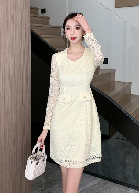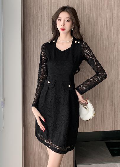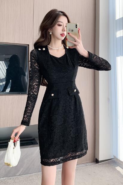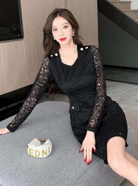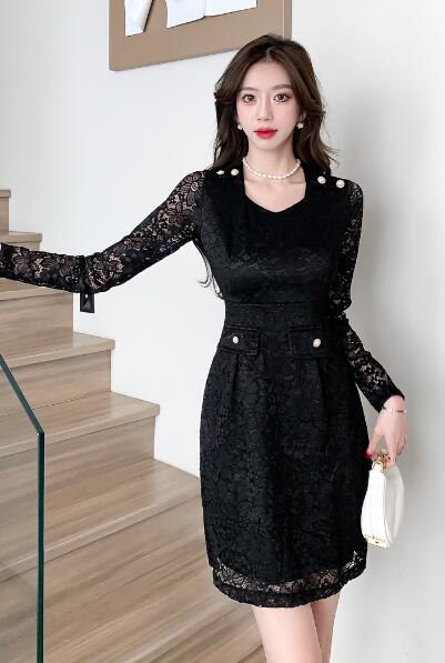 ♪2色展開♪ワンピース 結婚式 着痩せ おしゃれ レースワンピ セクシーワンピース キャバ 膝丈 長袖大人 スタイル上品 韓国 二次会 発表会 お呼ばれ同窓会 謝恩会 パーティー