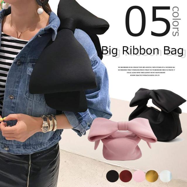 ショルダー部分が大きなリボンになったインパクトあるハンドルバッグです。