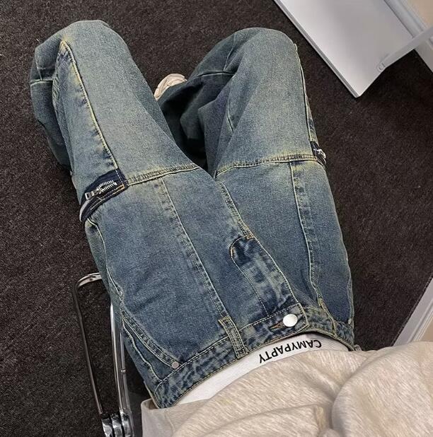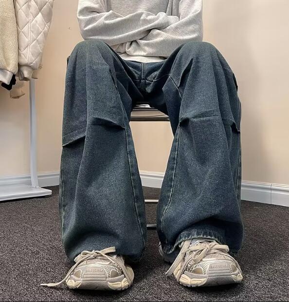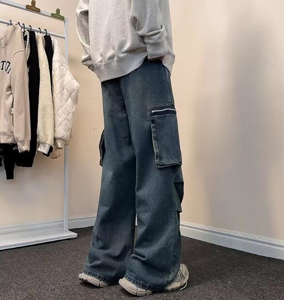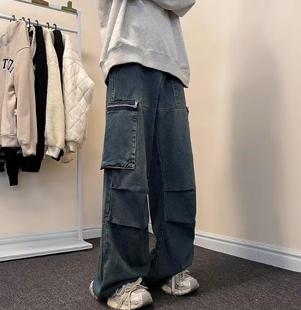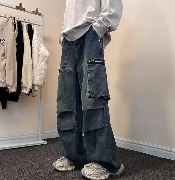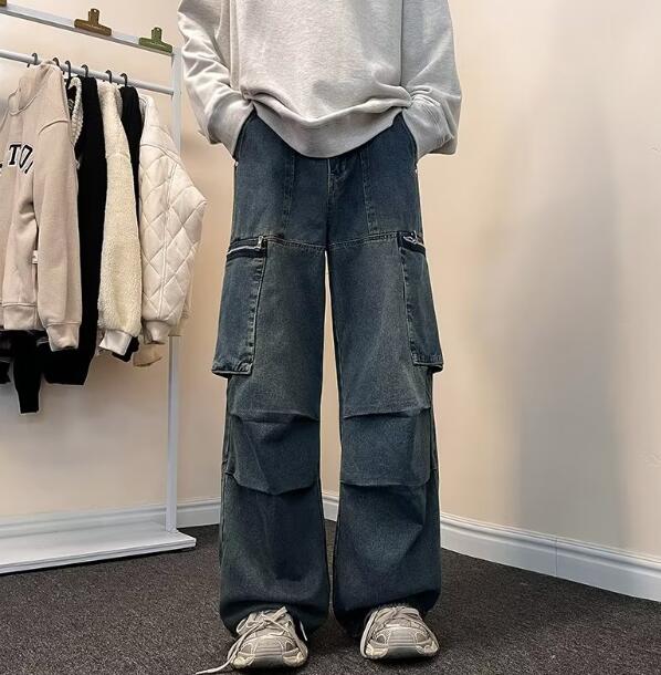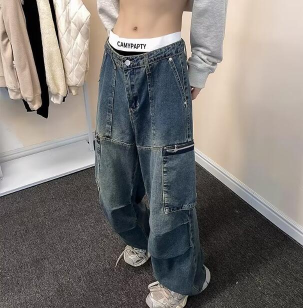 カーゴパンツデニムズボンボトムスパンツジーンズジーパンストレートシンプルダンス衣装ヒップホップHIPHOPレディースメンズガールズストリート奇抜派手韓国ビッグ大きいサイズ