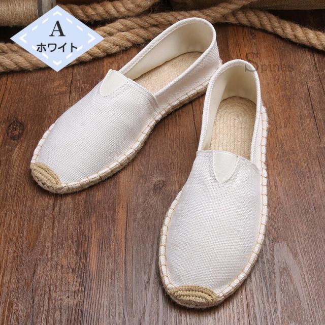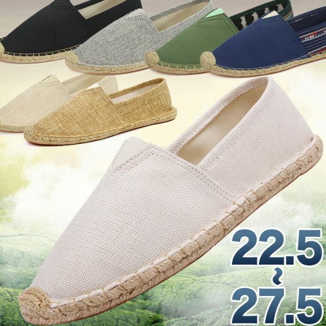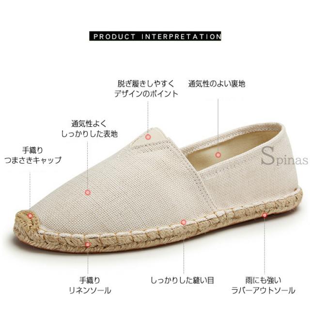 麻インソールが素足に気持ちいい 夏を感じるストレスフリーの靴 エスパドリーユ シューズ ユニセックス 男女兼用 スリッポン リネン 無地 麻靴