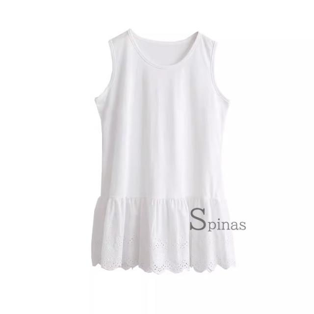 上品なスカラップレースが付いたタンクトップ。