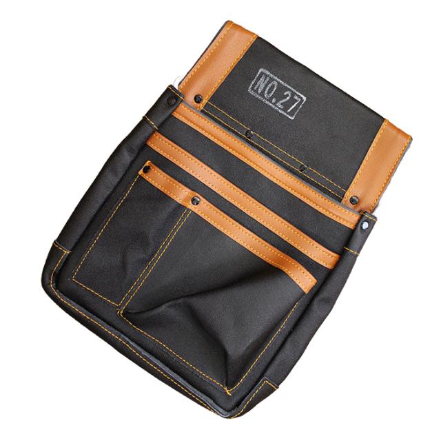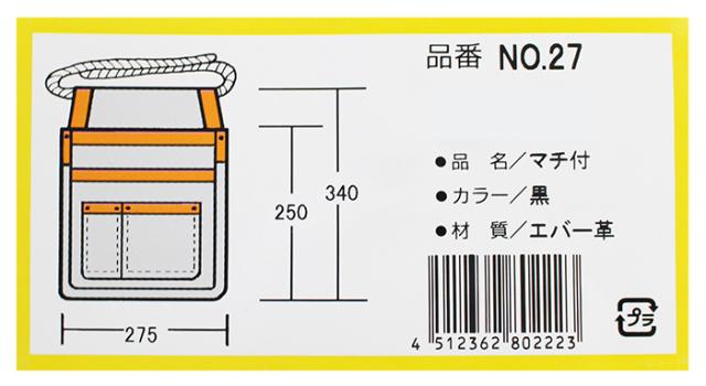 ■エバースキン釘袋 (No.27) 大 No.27-black 外あて二重底 マチ付 ひも付 黒 本職用 鋲止め