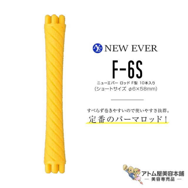 ニューエバー ロッド F型 ショートサイズ F-6S イエロー(10本入り/6mm×58mm)パーマロッド 巻き髪 ウェーブ 人気 定番 ロングセラー 美容室 理容室 床屋 バーバー サロン 理美容専門学校 美容専売 サロン専売 NEW EVER