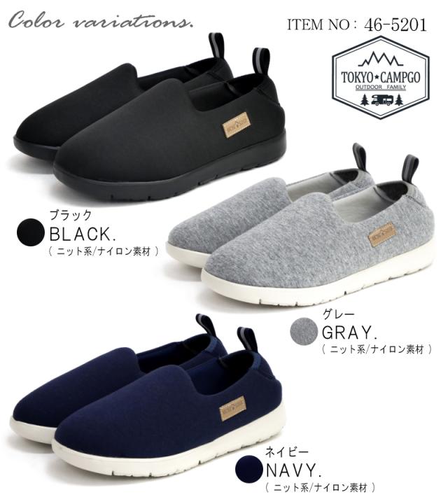 TOKYO★CAMPGO トーキョーキャンプゴー スリッポンシューズ レディース 2WAY カカト踏める ストレッチ 超軽量 室内 オフィス フラット 黒 ネイビー グレー 屈曲 反射テープ 3e