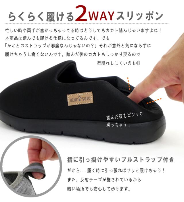 スリッポン ウチソト コンフォート カジュアル ワンマイル 脱ぎ履き楽ちん 旅行 病院内 施設 学校 セカンドシューズ 外販母趾気味 甲高 リラックス 通年 中敷き取れる