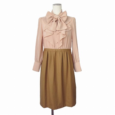 【中古】アナトリエ ANATELIER ワンピース ドッキング ブラウス フリル ボウタイ 36 ピンク 茶 レディース