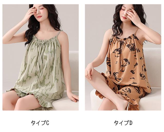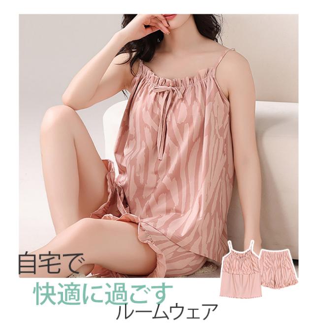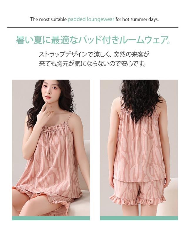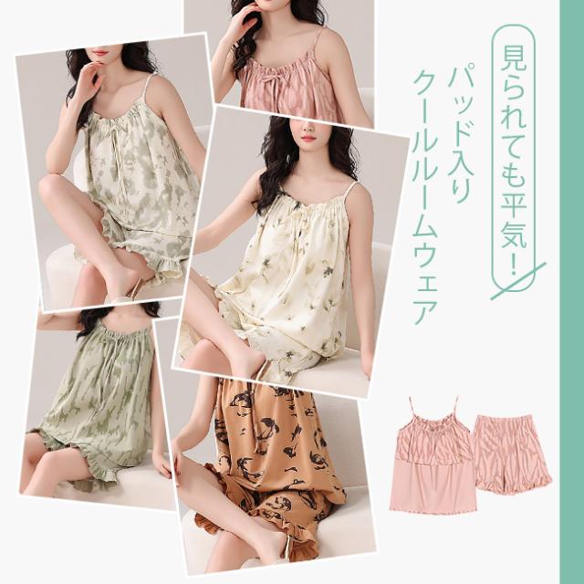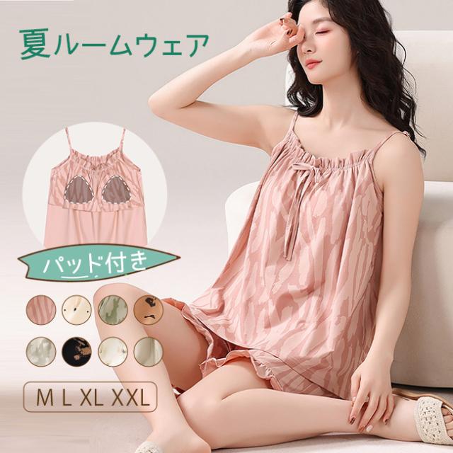 高級感 夏 パジャマ レディース ノースリーブ タンクトップ パッド付き ルームウェア 2点セット 夏用 涼しい