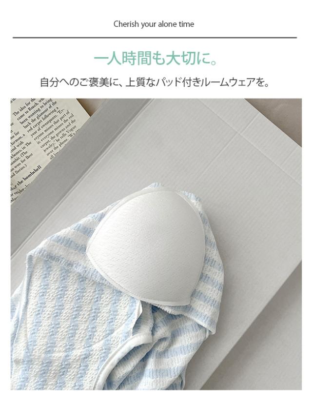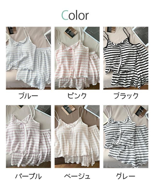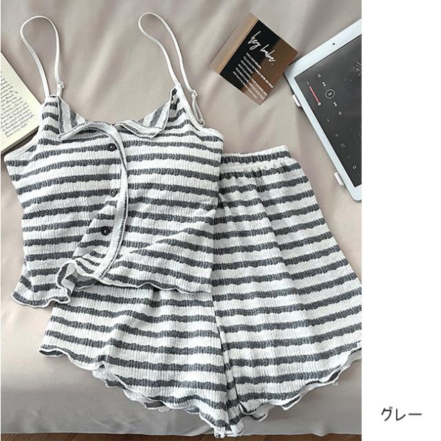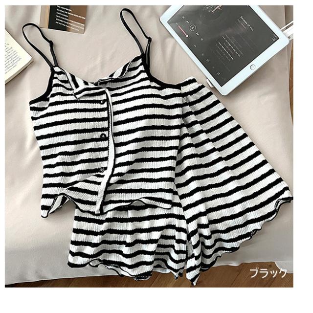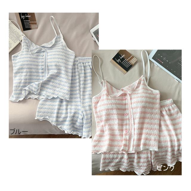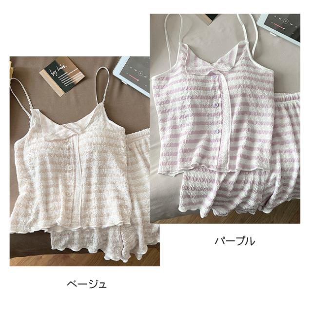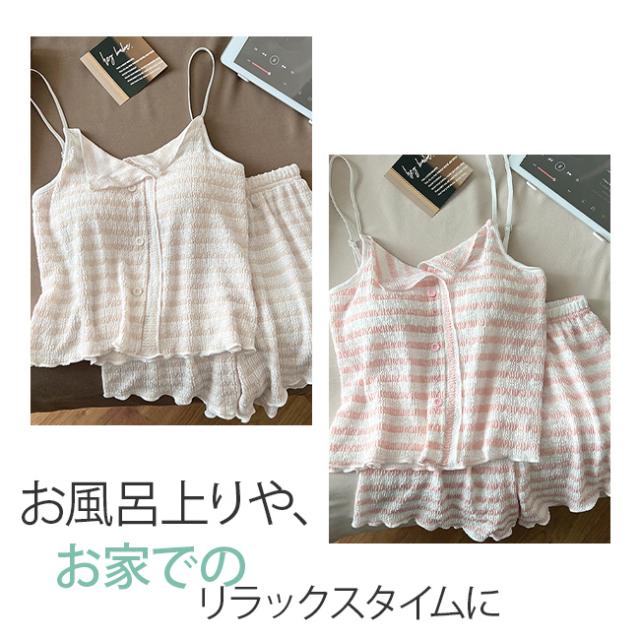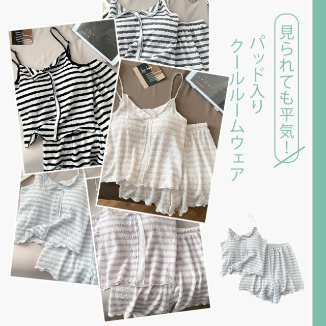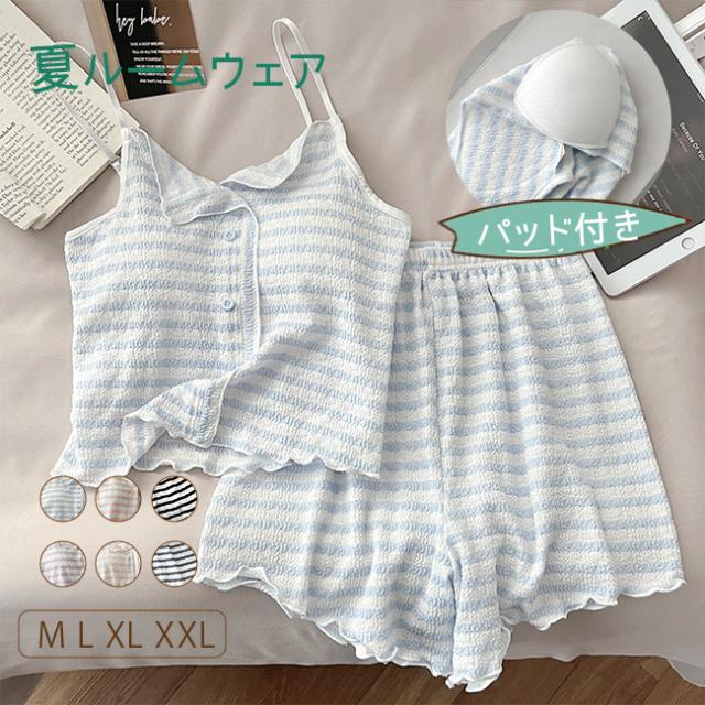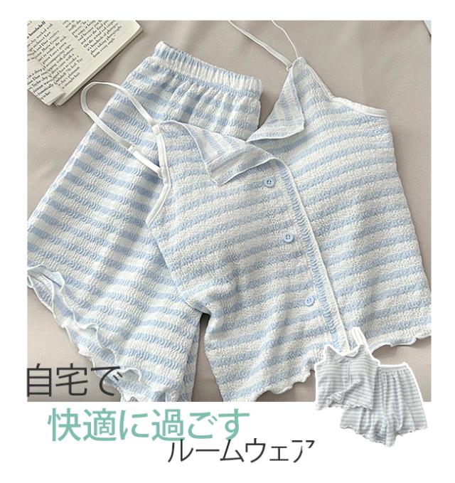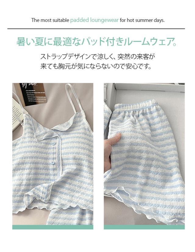 夏用 涼しい韓国風 ストライプ パジャマ レディース 新作 パッド付き ストラップ ストライプ ルームウェア セット