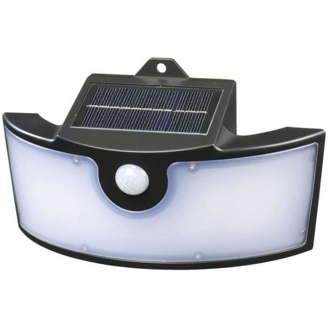 センサーウォールライト(明暗+人感/800lm/ソーラーパネルで充電/広配光/昼光色/保護等級IP65/ブラック) OHM LT-SSL80DWH2
