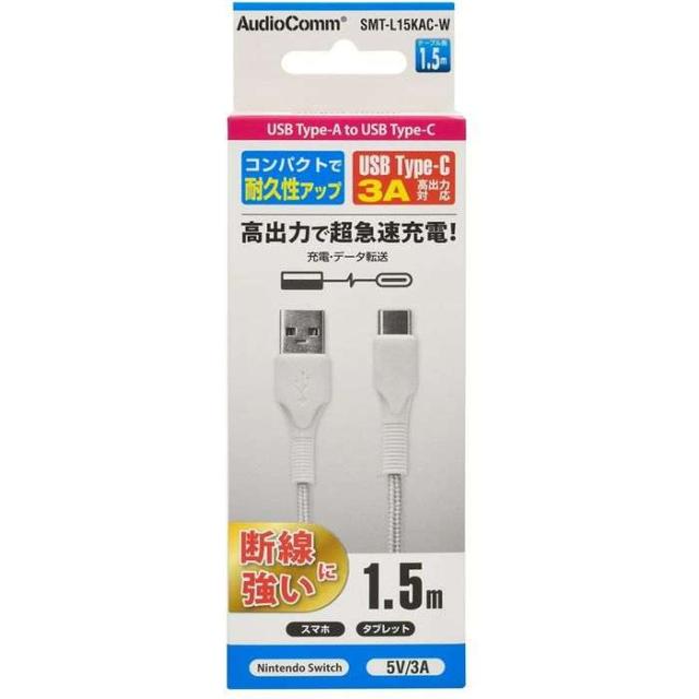 USBケーブル(Type-A to Type-C/3Aの高出力/ロングブッシュ形状/強化メッシュ/1.5m/ホワイト) OHM SMT-L15KAC-W