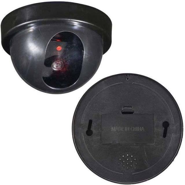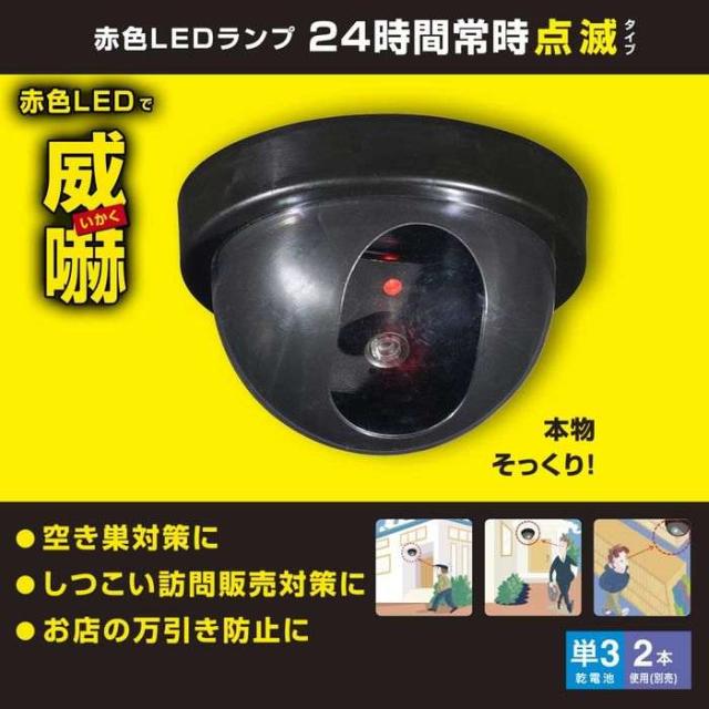 ダミーカメラ 電池式 単3形×2本使用 赤色LED24時間点滅 ステッカー付 ドーム型 ブラック