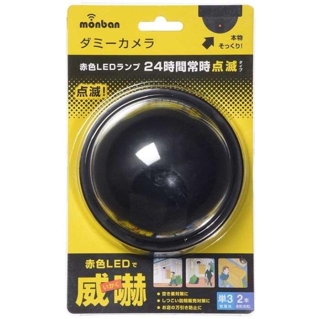 ■商品名:ダミーカメラ(電池式/単3形×2本使用/赤色LED24時間点滅/ステッカー付/ドーム型/ブラック)