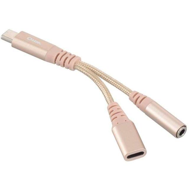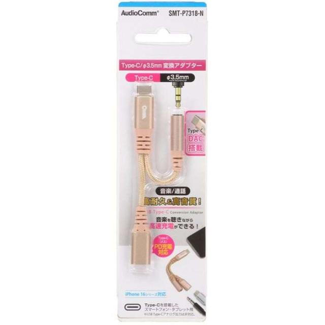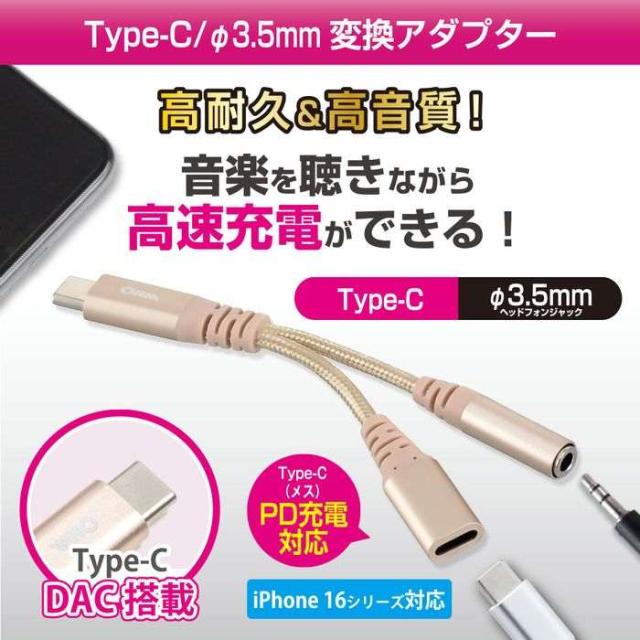 ヘッドホン変換アダプター(USB Type-C (オス)/φ3.5mmヘッドホンジャック(メス)+Type-C(メス)PD対応/アルミコネクタと強化メッシュ/DAC機能) OHM SMT-P7318-N