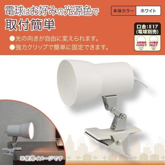 クリップライト E17 電球別売 白熱電球40W以下、LED電球8W以下 中間スイッチ付 ホワイト