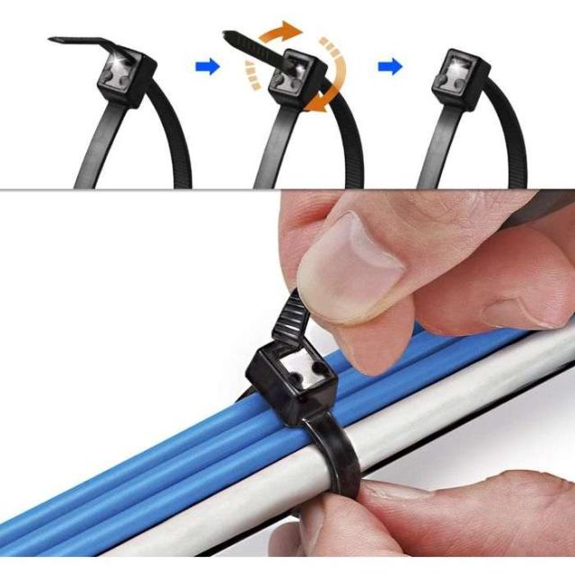 工具を使わず、簡単に手で切れる結束バンド。使用温度範囲 0℃〜85℃の耐候仕様。RoHS適合品。
