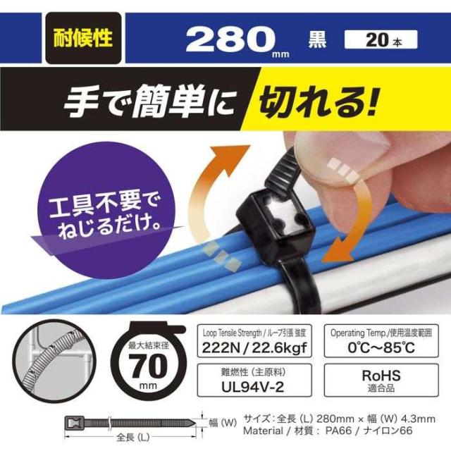 ■商品名:耐候性ハンドカットタイ(280mm/黒/20本入)
