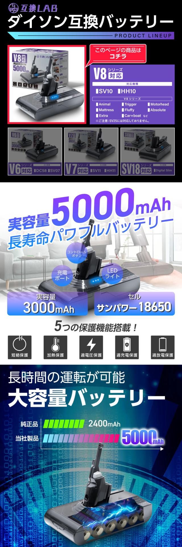 ダイソン dyson ダイソン用 ダイソン対応 V8 V8バッテリー SV10 SV12 バッテリー 交換 交換用 互換 充電 掃除機 バッテリーパック サンパワー 18650 3000mAh 4000mAh 4500mAh 大容量 PSE認証 長寿命 純正対応 Fluffy Animal Absolute Motorhead Extra Mattress 工具不要 保証付 長期保証 送料無料 即納 ランキング 人気