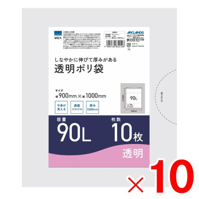 ウイザ WIZA 透明ポリ袋 90L 10枚 ALP-10×10個 セット販売 アークランズ
