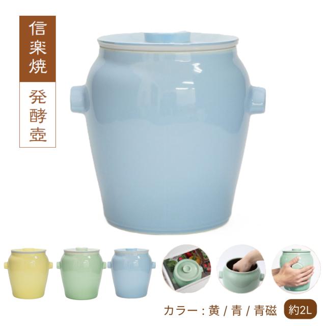 信楽焼 発酵壺 ぬか漬け 壺 味噌壺 手作り キムチ 容器 日本製 陶器 青磁 黄 青 発酵容器 保存容器 冷蔵庫 発酵食 手作り味噌 健康食品