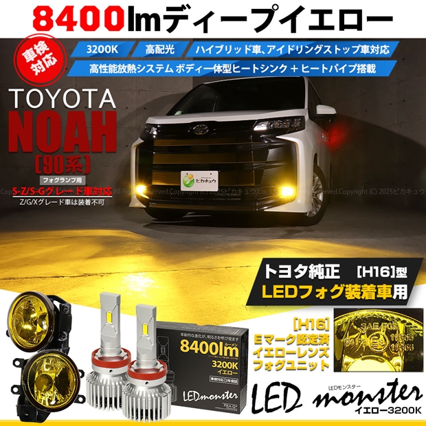 ピカキュウ,LED専門店ピカキュウ,ピカキュウledフォグ,ガラスレンズ付,フォグユニット,フォグランプ,ハロゲンフォグランプ,前部霧灯,トヨタ車対応,TOYOTA,純正LEDフォグと交換,クリアレンズ,フォグユニット,イエローレンズ,ガラスレンズ,H8対応,H11対応,H16対応,L8400,LED MONSTER,LEDモンスター,8400lm,イエロー,トヨタ,TOYOTA,ノア,NOAH,90系,S-Zグレード,S-Gグレード