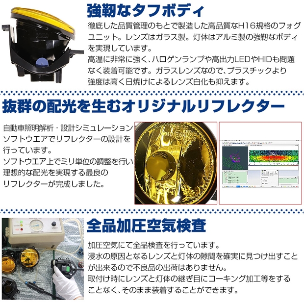 高い質感と耐久性を実現するEマーク認証イエローガラスレンズフォグユニット