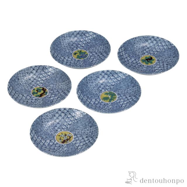 皿揃 吉田屋絵変り 5.2号 ( 退職祝い 定年 プレート 醤油皿 豆皿 和食 洋食 九谷焼 結婚 出産 内祝い 引き出物 金婚式 )