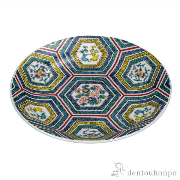 「送料無料」 盛皿 亀甲文 9号 ( 退職祝い 定年 和食 食器 料理 食器 パーティー 九谷焼 結婚 出産 内祝い 引き出物 )