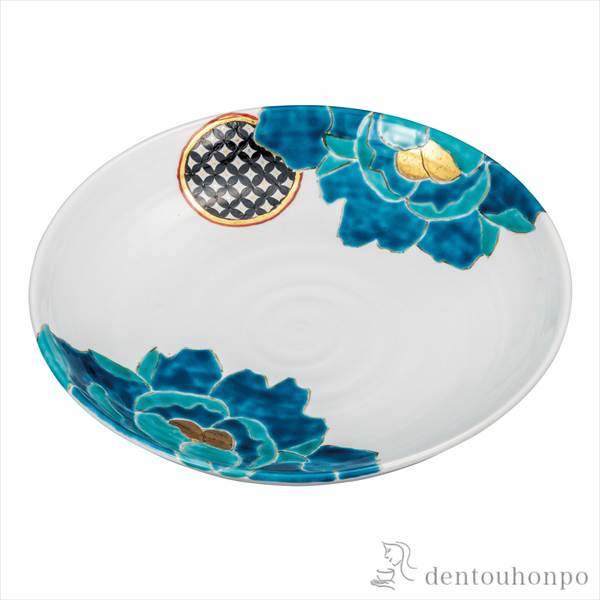 「送料無料」 盛皿 碧牡丹 9号 ( 退職祝い 定年 和食 食器 料理 食器 パーティー 九谷焼 結婚 出産 内祝い 引き出物 )