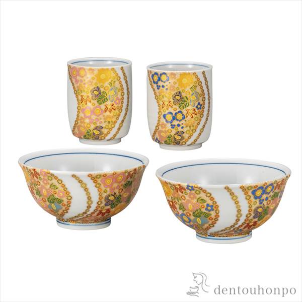 「送料無料」 睦揃 曲水花詰 ( 退職祝い 定年 夫婦茶碗 夫婦湯呑 セット ご飯茶碗 湯飲み 九谷焼 結婚 出産 内祝い 引き出物 )