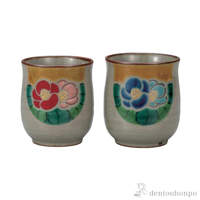 組湯呑 椿文 ( 退職祝い 定年 湯呑み 湯のみ セット 湯飲み おすすめ 九谷焼 結婚 出産 内祝い 引き出物 金婚式 )