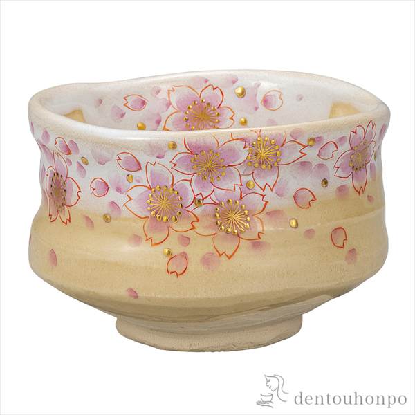 「送料無料」 抹茶碗 本金さくら ( 退職祝い 定年 抹茶碗 茶道具 茶器 お稽古用 抹茶 九谷焼 結婚 出産 内祝い 引き出物 )