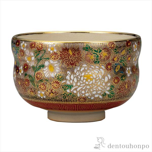 「送料無料」 抹茶碗 本金花詰 ( 退職祝い 定年 抹茶碗 茶道具 茶器 お稽古用 抹茶 九谷焼 結婚 出産 内祝い 引き出物 )