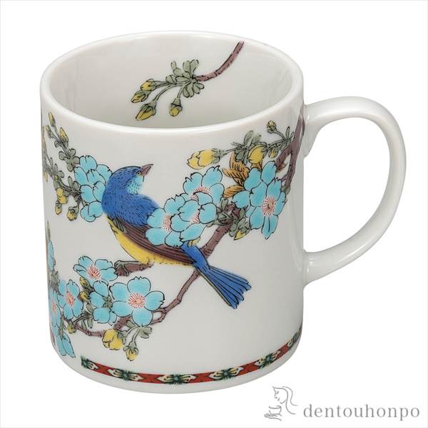 「送料無料」 マグカップ 桜に青い鳥 ( 退職祝い 定年 プレゼント デザイン マグ オリジナル タンブラー 九谷焼 結婚 出産 )