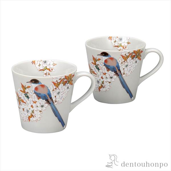 「送料無料」 ペアマグカップ 山桜に鳥 ( 退職祝い 定年 プレゼント デザイン マグ オリジナル タンブラー 九谷焼 結婚 出産 )