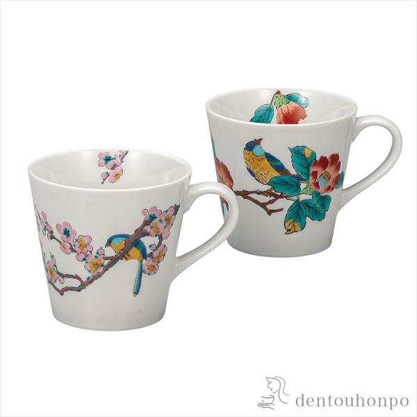 「送料無料」 ペアマグカップ 花鳥 ( 退職祝い 定年 プレゼント デザイン マグ オリジナル タンブラー 九谷焼 結婚 出産 )