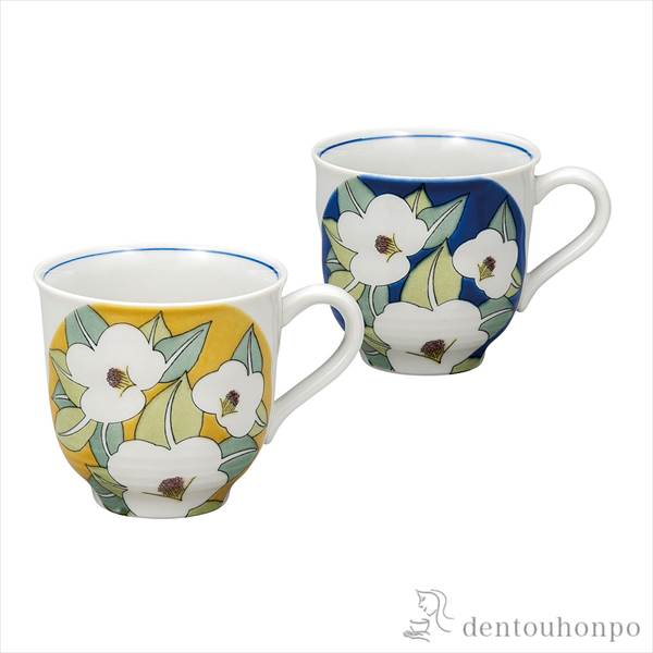 ペアマグカップ 釉彩花椿 ( 退職祝い 定年 プレゼント デザイン マグ オリジナル タンブラー 九谷焼 結婚 出産 内祝い 引き出物 金婚式 )