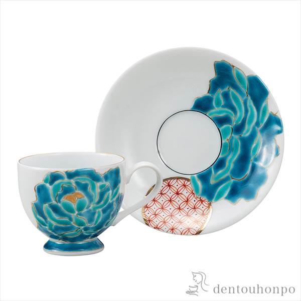 「送料無料」 カップ&ソーサー 青牡丹 ( 退職祝い 定年 セット ソーサー ティーカップ 美味しい おすすめ 九谷焼 結婚 出産 )