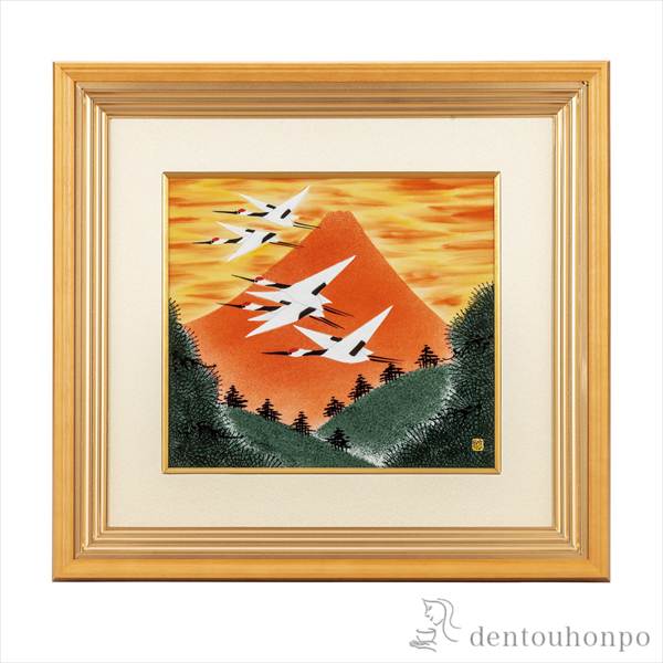 「送料無料」 陶額 赤富士に鶴 ( 退職祝い 定年 置物 額飾り 陶板 陶板画 法人 九谷焼 周年 創立 上場 竣工 開店 事務所移転 )